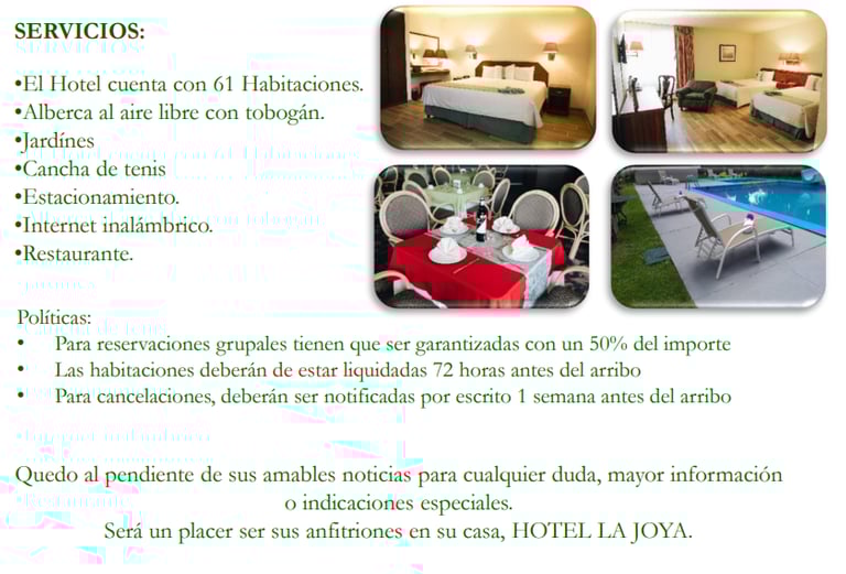 A continuación se presenta la lista de Hoteles para todos nuestros hermanos conciliares. (Estos hoteles se encuentran a menos de 30 minutos del Templo de Ejido de Techachalco)